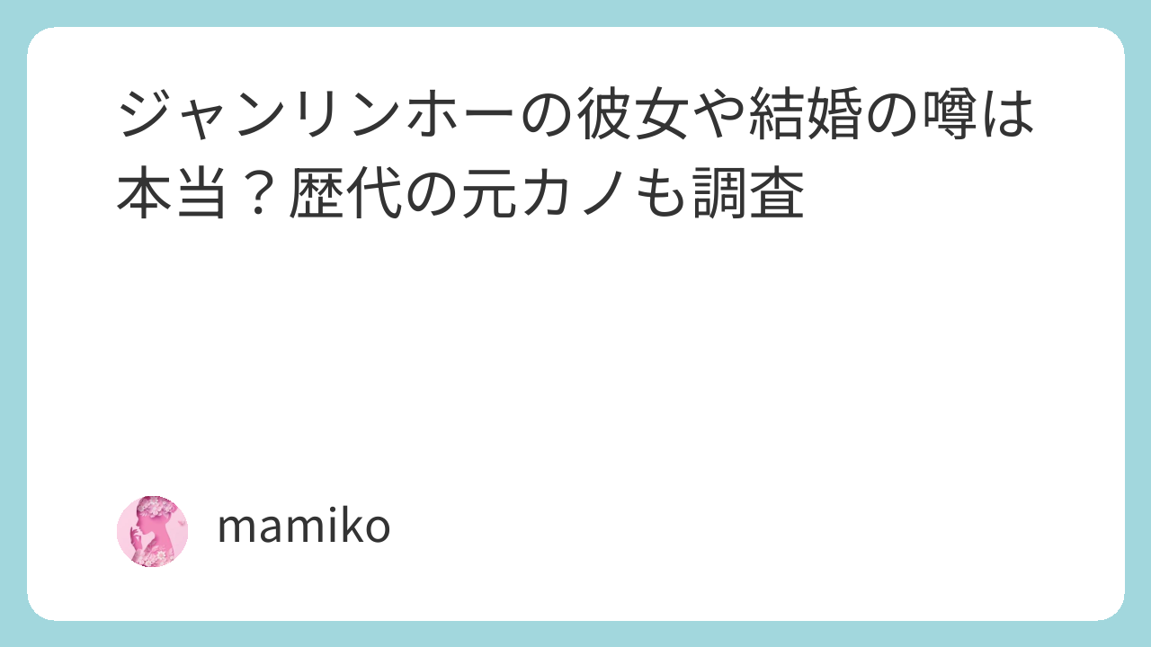 この記事では、そんなジャンリンホーさんの彼女・結婚・恋愛の噂まで、まるっとご紹介します!