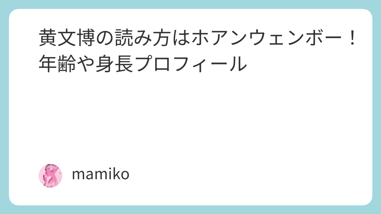 黄文博(Huang Wenbo) の読み方は、カタカナだと ホアン・ウェンボーが、いちばん自然で一般的です。